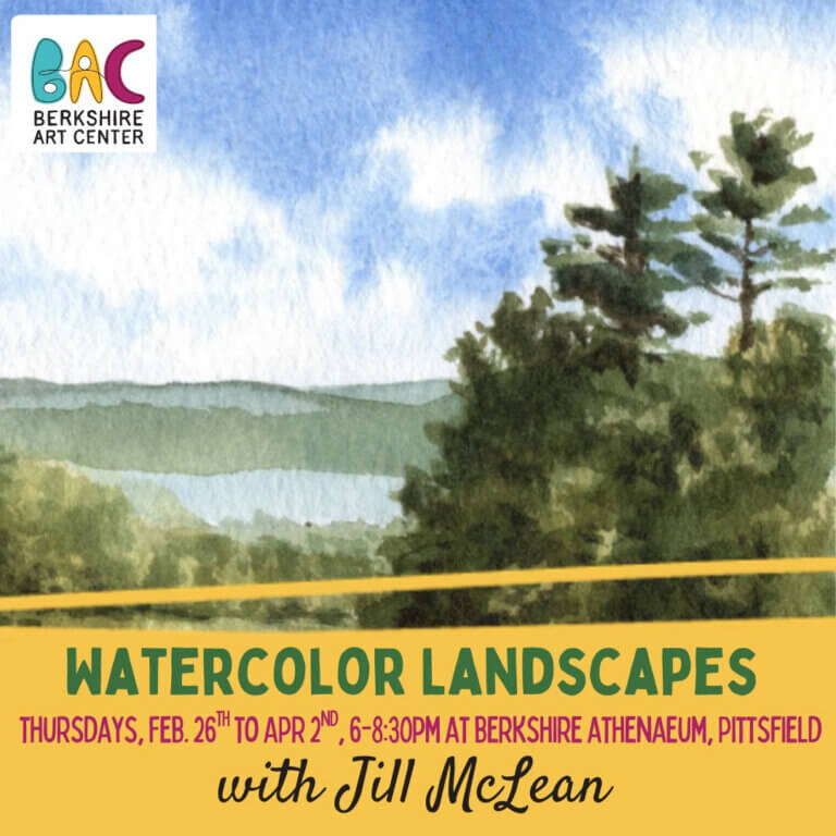 26 Feb 6:00 pm - 8:30 pm Watercolor Landscapes Berkshire Athenaeum 1 Wendell Ave., Pittsfield Event Details Get Directions Class, Workshop, and Open Studios, Outdoor Event